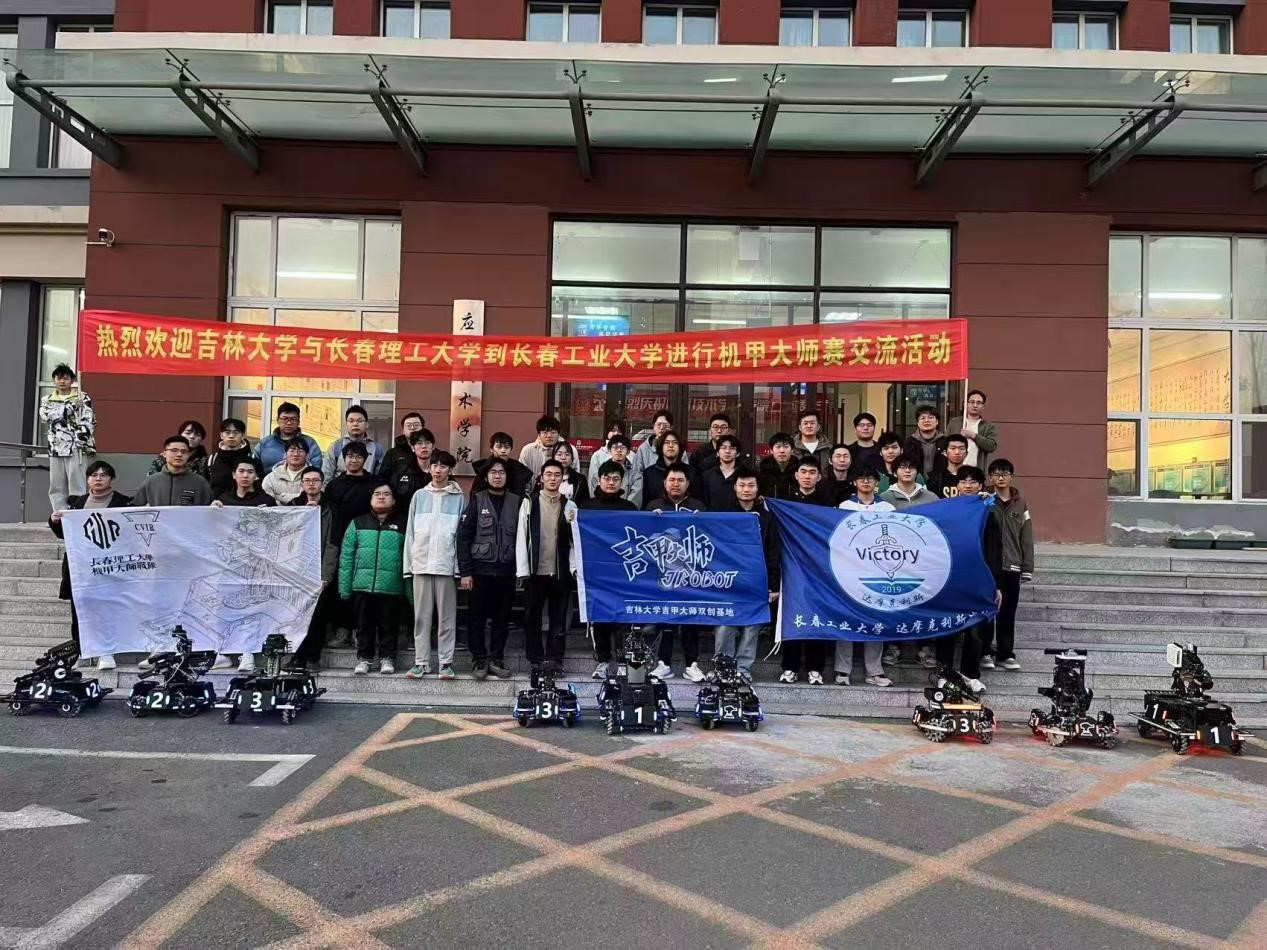 本次比赛我校参与其中学生15人,到比赛现场学生8人,指导老师5人。战队自2024 年5月启动备赛,备赛期间,队员们不断攻克单发限位机构、多结构强度拓扑分析和云台平衡重力补偿等技术难点,历经5个月的封闭式设计研发,完成了步兵机器人、哨兵机器人、英雄机器人、平衡步兵机器人和工程机器人的结构设计、加工装配及控制系统开发等工作,同时战队与吉林大学、长春理工大学开展了技术互访及模拟对抗,围绕结构模块集成设计、重力补偿结构优化等议题展开深度研讨,最终实现了新跨越!
